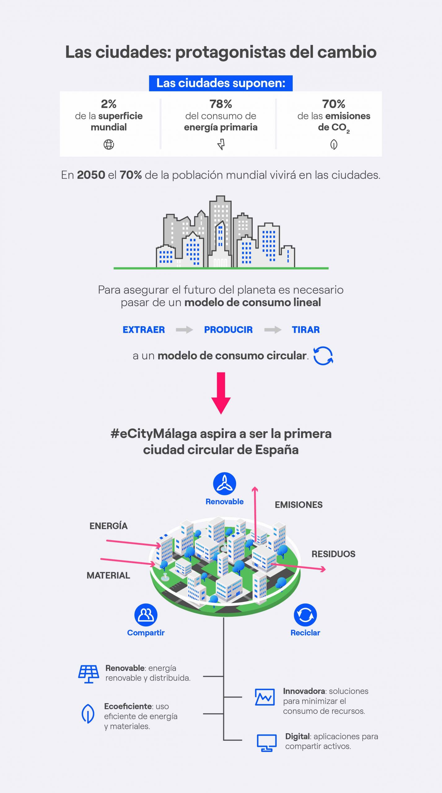 Este modelo de #eCity también se trabajará en Málaga. La idea es convertirse en un referente de sostenibilidad y circularidad a partir de una propuesta de transición energética y utilización de recursos dentro del Málaga TechParK, un espacio urbano al que aportará beneficios medioambientales y una mayor competitividad.